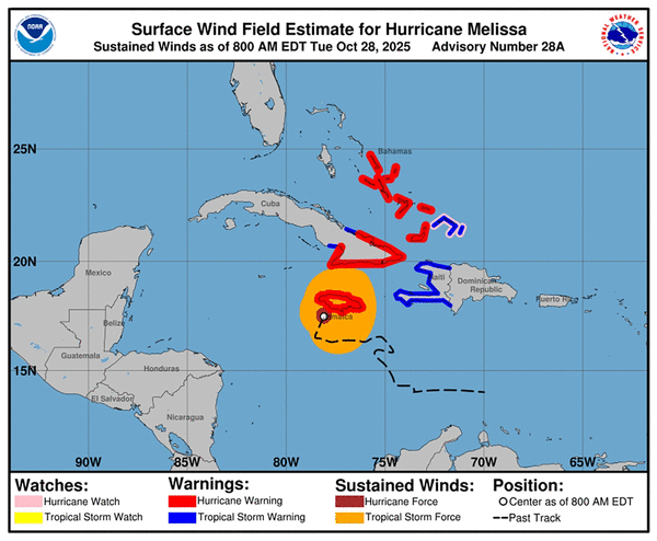 The National Hurricane Center pleaded with Jamaicans to “remain sheltered!” as the already-deadly storm churned just offshore. One measure of Melissa’s frightening potential for destruction: It already ranked as the 6th strongest Atlantic hurricane on record, beating out Katrina.