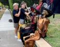 The Bryants aren't the only ones smiling by the time the last strips of white and purple tulle are wrapped around the mummy and the giant warty witch is securely tied against a tree. Shortly after the work begins, pedestrians stop to admire and passing cars slow to a crawl, with cellphones poking out the windows for photos.