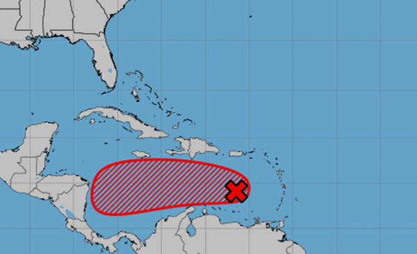 “The system is moving westward at 15 to 20 mph towards the central Caribbean Sea and is expected to slow down over the next few days,” forecasters said. “Environmental conditions are forecast to become more conducive for development, and a tropical depression or storm is likely to form over the next few days.”